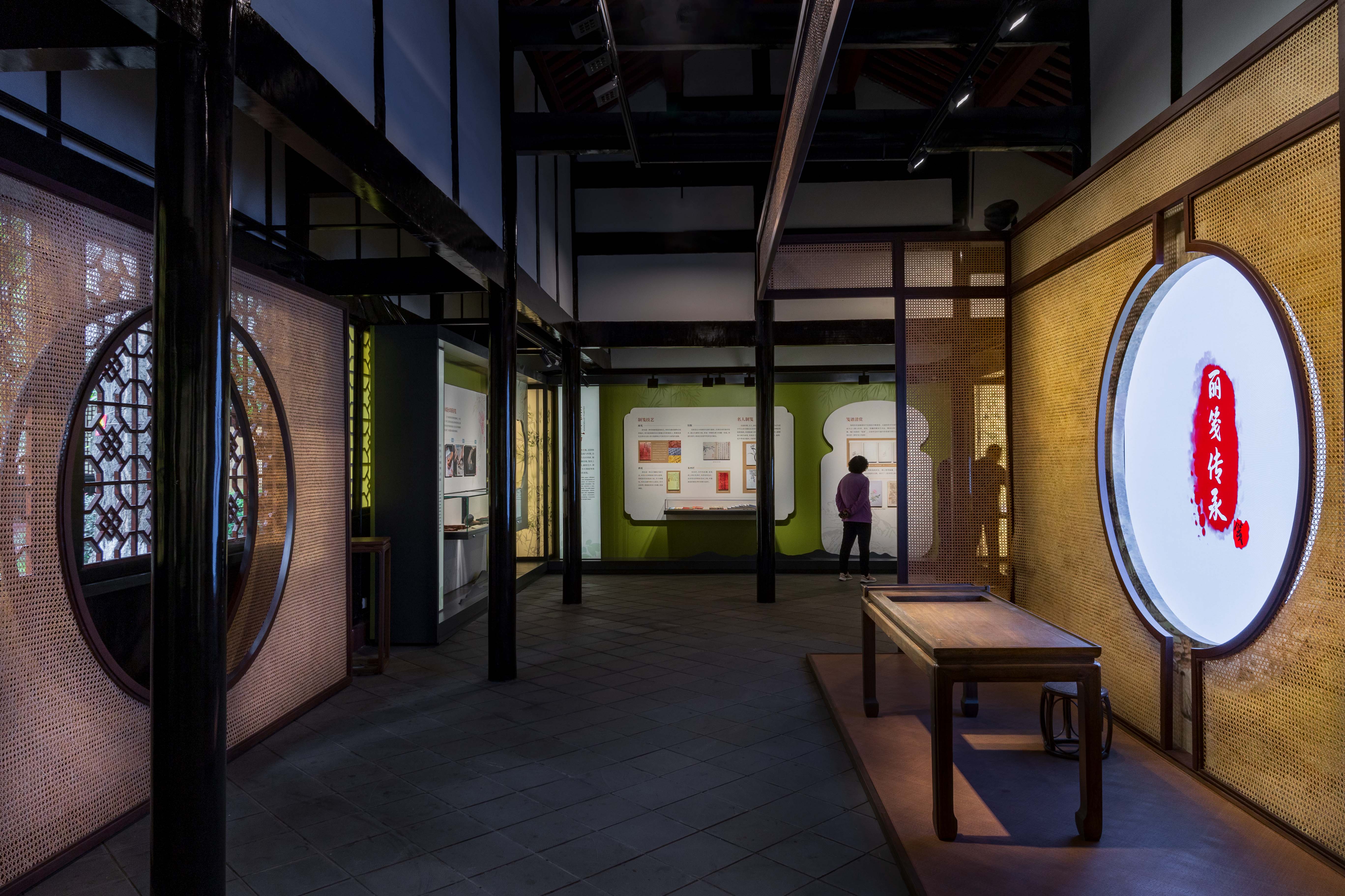 新升級的薛濤紀(jì)念館在展陳中以時(shí)間軸串聯(lián)薛濤從樂伎到“女校書”的傳奇經(jīng)歷,展品包括《洪度集》復(fù)刻本、薛濤箋制作工具等。在整體的展陳設(shè)計(jì)中,則頗具巧思。展廳以“箋”為線索,從實(shí)物陳列到多媒體延伸,邏輯清晰的給大眾講述了薛濤傳奇的一生。其中還特別設(shè)置場景復(fù)原區(qū),通過生動(dòng)的演繹復(fù)原“浣花溪制箋”“箋紙工藝”等,采用燈光模擬自然光增強(qiáng)代入感。