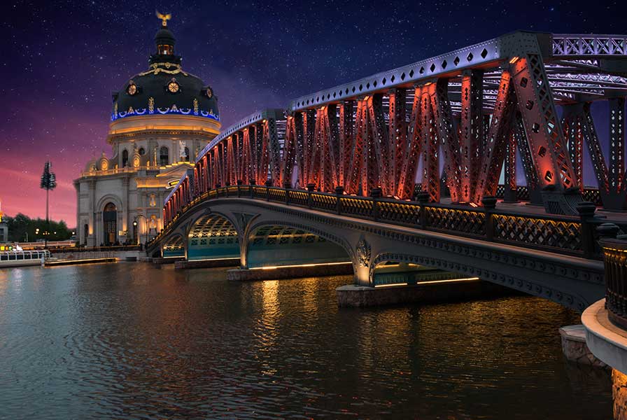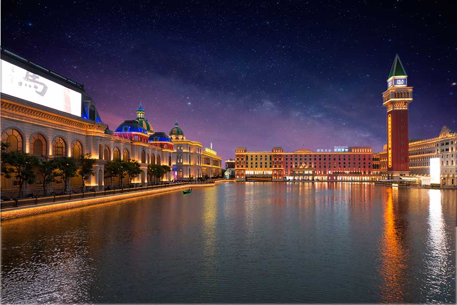 WAC充分發(fā)揮定制化服務(wù)優(yōu)勢(shì),特別定制多款戶外照明燈具,點(diǎn)亮飛馬水城。月色皎皎,水波粼粼,開闊的水域環(huán)繞一幢幢歐式風(fēng)格的建筑、一座座異國(guó)風(fēng)情的雕塑,一縷縷五彩斑斕的燈光,徜徉其中,別有一番風(fēng)情。