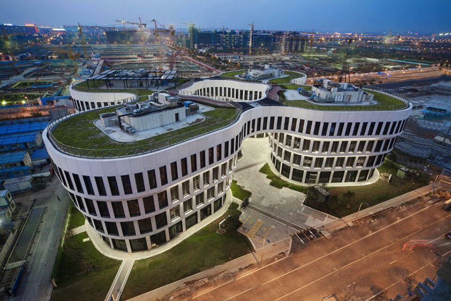 虹橋·協(xié)信中心由10棟甲級(jí)花園式總部型辦公集群組成,樓宇之間高低、寬窄、角度各有不同,大、中、小三種供客戶選擇的辦公平面加上五種不同的建筑高度,組成了一個(gè)家庭式的組合變化。