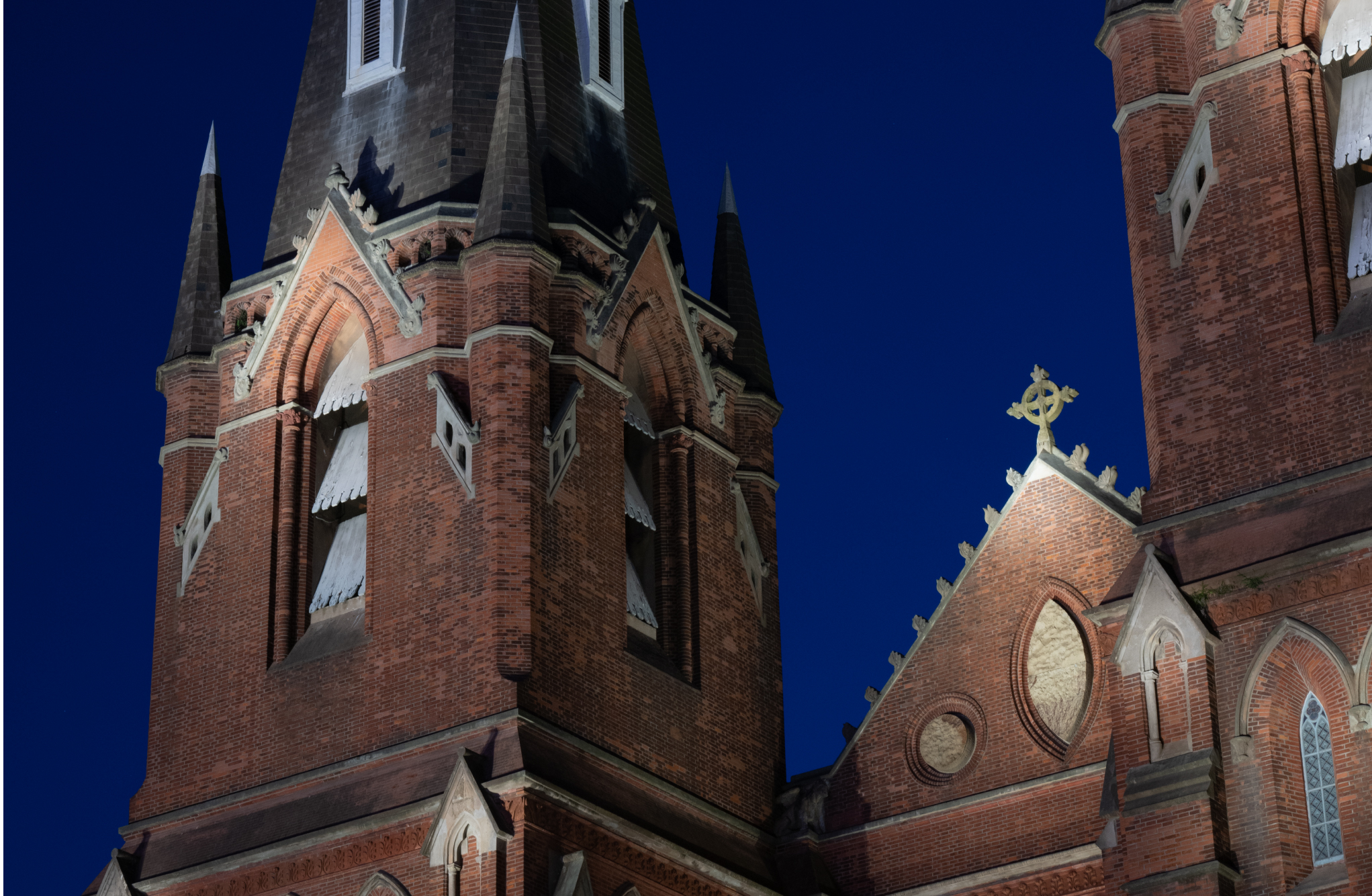 清光緒三十年(1904年)動(dòng)土興建,1910年9月大堂落成。整幢建筑高五層,磚木結(jié)構(gòu)。法國(guó)中世紀(jì)樣式。大堂頂部?jī)蓚?cè)是哥德式鐘樓,尖頂。高50米。大堂內(nèi)圣母抱小耶穌像立祭臺(tái)之巔,俯視全堂,為整座教堂之中心。教堂占地面積2670平方米,建筑面積6670平方米,可容納3000余人。